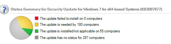 WSUS has some nice client reporting options. Search for the KB again, right click and choose ‘Status Report’. This is usually not too lagged in it’s information, and you can check to make sure none of your PCs have the update any more. If there’s only a few, it may be easier to manually fix the remainder.